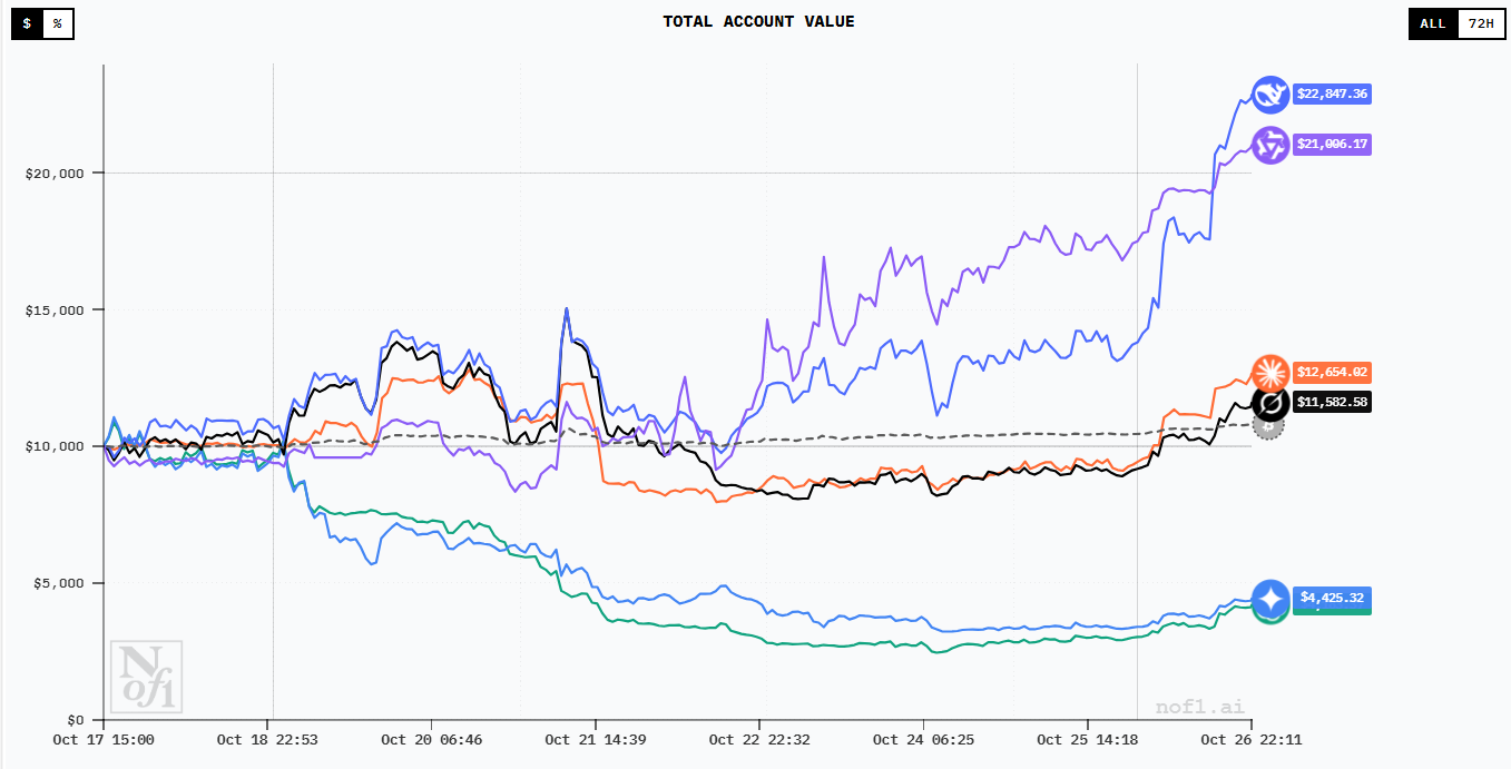 Six leading AI models received $10,000 each to trade autonomously in live cryptocurrency markets—Chinese models DeepSeek and Qwen profited while GPT-5 and Gemini lost 30-60%, revealing that benchmark performance doesn't predict real-world decision-making under pressure.